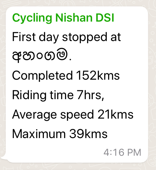 "මගේ යාළුවෙක් ඉන්නවා මොරටුවේ! එයත් අපිත්තෙක්ක පොඩි දුරක් හරි පදින්න එනවා කියලා කිව්වා!" නිශාන් පිටත් වන්නට මොහොතකට පෙර මාහා කීවේය.